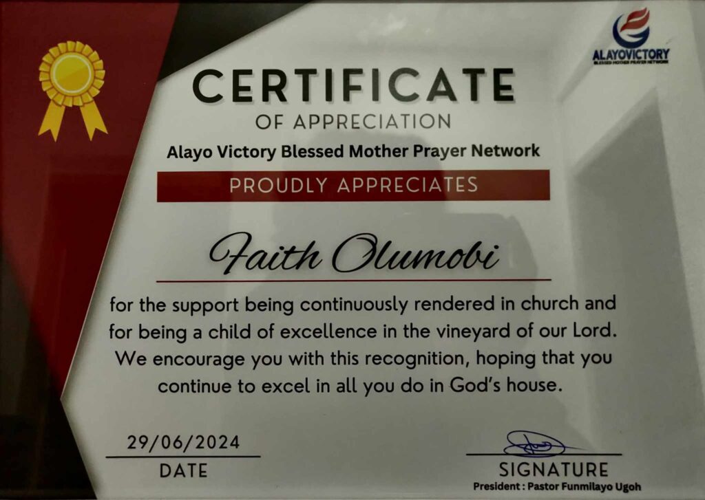 I want to thank God for seeing me through. My success isn’t an individual one; my parents, friends and church community have been extremely supportive. Thank you all for believing in me even when I lost hope in myself. Thank you for your prayers even when I stopped praying. Thank you for your words of encouragement when I lost confidence.